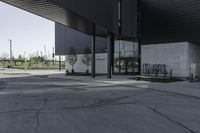 A modern office building in Toronto's financial district. The clear sky adds a sense of calm to the bustling city life. Impressive urban architecture with a sleek facade and well-designed urban infrastructure.