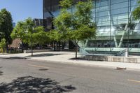 A modern architecture landscape in Toronto, Canada. The city's business district is lined with tall office buildings and tree-lined streets. Clear skies create a vibrant backdrop for the urban design and infrastructure of this metropolitan area.