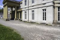 This is an image showcasing a classic architecture building in a suburban area of Ontario, Canada. The building, with its symmetrical facade and lush green surroundings, stands out as a tourist attraction. The clear sky above adds to the beauty of the scene. The residential area with neatly paved roads and well-maintained grass and trees creates a peaceful atmosphere. This picture represents a snapshot of the rich architectural heritage and picturesque suburbs of Ontario, capturing the charm of this Canadian city.
