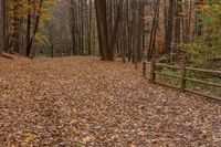 A serene landscape in Ontario, Canada. The open space is adorned with trees, grass, and vegetation. Split rail fences and gravel thoroughfares add rustic charm. Incidental people blend with nature in this picturesque scene.