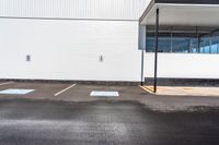 A straight road in Ontario, Canada. Asphalt surface leads to shopping district in Toronto. Busy parking lot with storefronts of various shops. Typical day in the city.