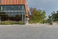 This is an image of the entrance of a tall office building in Toronto, Canada. The facade of the building is visible, along with the surrounding vegetation, including trees and shrubs lining the path. The image captures a sunny day in the city, with clear skies and the hard shadows cast by the building and trees. The photo represents urban design in a residential area, showcasing the combination of real estate and green open spaces. The image conveys a sense of professionalism and sophistication, highlighting the importance of the building in the urban landscape of Toronto.