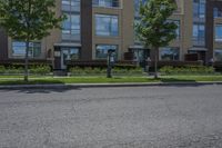 A residential area in Toronto, Canada. The cityscape features houses, buildings, and roads with asphalt surfaces. Trees and vegetation add a touch of green to the urban design. A typical day in Toronto's vibrant neighborhood.