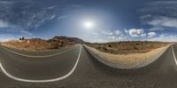 A straight road stretching through the stunning landscape of Capitol Reef, Utah. Clouds fill the clear sky, creating a dramatic backdrop. Highway 12 leads the way, inviting travelers to explore the beauty of nature in the USA.