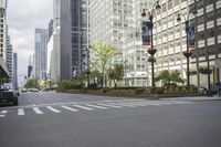 This stock photo captures the hustle and bustle of city life in New York. Cars are seen driving on the streets lined with modern skyscrapers and beautiful flowers. The image showcases the vibrant energy of the metropolitan area, with its well-developed infrastructure and urban landscape. The cityscape is dominated by iconic office buildings and bustling business districts. The photo depicts the dawn of a new day in Manhattan, the heart of New York City, with its lively neighborhood and residential areas. The busy thoroughfares and crosswalks reflect the dynamic nature of this cosmopolitan city.
