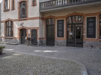 the old townhouse, in sweden is next to an empty cobblestone street