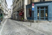 Classic architecture in Paris, France. Cobblestone roads lined with charming storefronts and bustling cafes. Public spaces and restaurants invite city dwellers and tourists to enjoy the vibrant city life of Europe.
