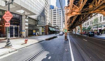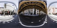 An empty street in Chicago, Illinois. The wide road stretches into the distance, with an urban landscape surrounding it. The camera's unique perspective gives the illusion of the street being upside down.