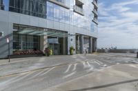 A modern architecture building in the business district of Chicago, Illinois. The coastal city provides a stunning backdrop of the ocean. The facade of the building is a mix of residential, office, and hotel spaces, making it a versatile property in a bustling city.