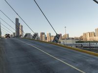 A stunning view of the cityscape and skyline of Chicago, Illinois at dawn. The image showcases the magnificent architecture of the city, with skyscrapers towering over the urban metropolis. The clear sky adds to the beauty of the scene, highlighting the low hanging clouds and the vivid colors of the sunrise. The road and infrastructure, including the bridges and highways, are visible, symbolizing the bustling metropolitan area. This photo captures the essence of Chicago, showcasing its vibrant energy and captivating charm.