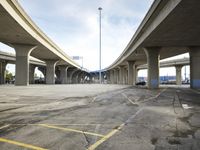 This image captures the cityscape of Chicago, Illinois, in the USA. The photo shows the urban infrastructure with roads, highways, and concrete bridges. In the foreground is an open space with parking decks and garages. The straight road leads towards an underpass and a factory in the distance. The clear sky above is marked by contrails. With its mix of architecture, industrial, and public spaces, this photo represents a typical day in the city. It showcases the urban landscape and the transportation infrastructure that defines Chicago.
