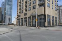 This is an image of the downtown area of Chicago, Illinois in the USA. The cityscape showcases the modern architecture and diverse buildings in this metropolitan area. The roads are lined with asphalt, and the urban neighborhood features a mix of residential and commercial properties. The clear sky serves as a backdrop to the city's skyline, creating a vibrant and bustling scene. This photo captures the essence of downtown Chicago, with its iconic architecture and dynamic human settlement.
