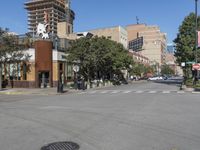 A clear sky over downtown Chicago, Illinois. Streets lined with iconic buildings lead to vibrant neighborhoods. Suburban roads connect to the bustling city center. Public spaces filled with restaurants, cafes, and bars invite you to dine out in this dynamic urban art district.
