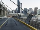 A metropolitan area in the heart of downtown Chicago, Illinois. High-rise buildings and suspension bridges create a stunning cityscape. The clear sky highlights the city's architecture and infrastructure. A perfect vacation destination for architecture enthusiasts.