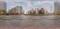 this circular panorama photograph is very unique and looks great on the outdoors with many buildings in it