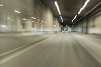 A night view of a busy street in downtown Chicago, Illinois. The concrete road is lined with bright lights and streaks of light from passing vehicles, creating a dynamic urban atmosphere.
