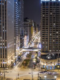 Chicago Night Cityscape: High-rise Buildings Illuminate the City