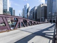 This image showcases the modern architecture and cityscape of Chicago, Illinois in the USA. The photo captures the vibrant metropolitan area with its skyscrapers, bridges, and elevated roads. The concrete streets and pedestrian paths connect the buildings and create a bustling urban environment. In the background, the skyline and downtown area can be seen, against a clear blue sky with contrails. This photo represents the high energy and dynamic atmosphere of the city. Experience the beauty and excitement of Chicago with this stunning image.