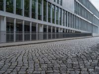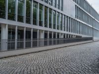 Modern architecture in a European city. Urban design blending into a suburban landscape. Office buildings and residential quarters in a bustling business district. Cobblestone roads contrast with the sleek lines of Germany's urban architecture.
