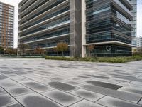 This stock photo showcases a modern architecture office building in a bustling business district. The building's sleek design stands tall against the city skyline, with the sky reflecting on its exterior. The sidewalk in front of the building is lined with vegetation, adding a touch of greenery to the urban setting. The road surface, paved with grey asphalt, leads to open spaces and business campuses. This image captures the essence of city life in Europe, specifically Lisbon, Portugal. It represents the fast-paced urban lifestyle and the infrastructure that supports it.