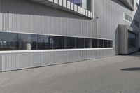 This is an image of a modern office building in Toronto, Canada. The grey metal walls and glass windows create a sleek and high-tech facade. The building stands in the heart of the business district, surrounded by other tall structures. The open space around the building is covered with asphalt roads and sidewalks, with curbs and road surfaces. The urban design of this area features a combination of composite materials and shades of grey, giving a contemporary and stylish look. This photo showcases the modern architecture and urban landscape of Toronto.
