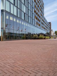 This image showcases the modern architecture and urban design of a city in Holland, Netherlands. The clear sky reflects on the glass walls of the buildings, creating a striking contrast. The city is situated near a river and features a pier with restaurants and hotels, offering a vibrant city life. The open spaces and stunning landmarks make it a popular destination in Europe. The image captures the essence of the urban lifestyle with street lights illuminating the road surfaces and a jetty providing a picturesque view of the water. Experience the beauty of this city and enjoy the various architectural wonders it has to offer.