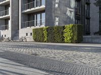 A typical scene in Berlin, Germany. Bicycles parked outside a modern residential building with green plants. The vibrant city life and urban design of Berlin is showcased in this image.