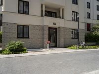 A modern residential area in Berlin, Germany. The city's architecture showcases a mix of modern designs and historic cobblestone streets. Trees line the roads and add to the urban charm of the neighborhood.