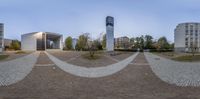 A straight road in Berlin, lined with cobblestone walls and modern architecture. The urban landscape at night showcases the city's vibrant city life and European flair. Dark surfaces contrast with open spaces in a quarter of Berlin.