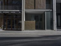 This is an image of a modern architecture building in Berlin, Germany. The cityscape features a clear sky and the reflection of the building's facade on the glass windows. The sun creates shadows and highlights the architectural lines and curves of the building. The road surface, lined with curbs, leads to the urban area with office buildings and shops. This photo represents the modern and urban landscape of Berlin, with its mix of architecture, clear skies, and reflective surfaces. It captures the beauty of the city and its European charm.