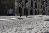 City Street Corner with Bricked Curb and Cobblestone Walkway