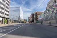 This stock photo captures a city street in Los Angeles, California, USA. The image shows several tall buildings in the background as a man drives on his motorcycle. The architecture of the buildings and the urban design of the cityscape create a stunning metropolitan area. The road, made of asphalt, stretches straight down the road, with motion blur adding a sense of movement. The lane markings and crosswalks indicate a bustling city life, with people crossing the street. This photo perfectly captures the energy and vibrancy of downtown Los Angeles.