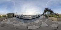 this is a 360 - view of a large building with a sky background in a circular lens