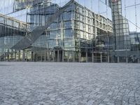 This image captures the modern architecture and urban design of Berlin, Germany. The city showcases a mix of buildings, from high-rises to condominiums, against a clear sky. Cobblestone roads and open spaces create a contrast with the sleek lines and glass facades of the structures. The metropolitan area is bustling with business activity, with office buildings and headquarters dominating the landscape. The snapshot features a factory with scaffolding and a glass wall, representing the city's industrial and innovative side. This photo encapsulates the dynamic and diverse urban atmosphere of Berlin.