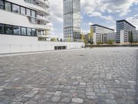 This image captures the modern architecture and cityscape of Berlin, Germany. The photo shows a road-lined with residential buildings and office buildings in the metropolitan area. The city is a vibrant mix of modern and traditional architectural styles, with cobblestone roads and open spaces like plazas. The photo represents the energy and bustling city life of Berlin, a major business and cultural hub in Europe. It showcases the urban design and public spaces that make the city unique. This image is a perfect representation of the dynamic atmosphere and human settlement in Berlin.