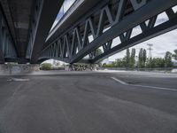 A modern concrete bridge in Hamburg, Germany. The urban design incorporates graffiti walls and open spaces. The highway and lanes provide efficient infrastructure for city life. Clouds add drama to the European skyline.
