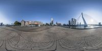 a city scene is depicted through the fish eye lens of this spherical photograph taken in the middle east corner of new york, ny