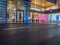 Cityscape at Night with Converted Shopping Mall Building and Neon Lights