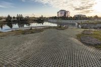 This stunning stock photo captures the beauty of Markham, Ontario, Canada at dawn. The panorama showcases the city's impressive architectural structures and charming residential areas. The road smoothly curves through the city, leading to the river bank and the coastal area. The image also features the lush green grass surface and trees, adding to the serene atmosphere of this urban landscape. This captivating cityscape photo is a perfect representation of Markham's thriving real estate and infrastructure.