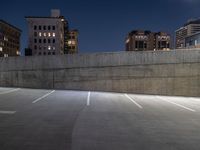 A nighttime scene in Salt Lake City's business district. Modern office buildings and concrete streets are illuminated by artificial lights. The cityscape showcases the urban design and architectural features of Utah's capital.