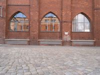 This image showcases the classic architecture of a building in Berlin, Germany. The brick facade and wooden windows portray the city's rich history and urban design. The cobblestone road surface and courtyard add to the charm of the European city. The building's profile stands tall, representing the bustling city life and the vibrant public space it offers. This photo captures the essence of Berlin's architectural heritage and the blend of classic design and modern urban development.
