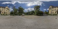 a view of several buildings on a sunny day in germany taken from a fish eye lens