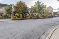 This is an image of a residential neighborhood in Toronto, Ontario, Canada. The photo captures a gloomy autumn day with a grey sky. The classic architecture and infrastructure, including asphalt roads and curbs, can be seen throughout the suburban area. Trees and vegetation line the thoroughfares, creating a picturesque scene. In the foreground, a pole stands tall, adding to the overall composition. This image represents the charm and character of a typical residential area in Toronto, Ontario.