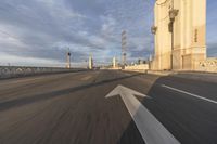 A classic architecture cityscape at dawn. The straight down the road perspective showcases the urban design and infrastructure. Motion blur adds a dynamic feel to the scene.