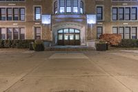 A classic architectural masterpiece in Detroit, Michigan. This historic school building exudes elegance with its brick facade and well-lit windows. At night, the building stands tall in the business district, showcasing the city's rich history.