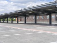 This image showcases a parking lot in Berlin, Germany. The modern architecture of the surrounding buildings contrasts with the classic architecture in the background. The parking bays under the roof provide shade on a sunny day. The concrete streets and asphalt road surface reflect an urban design. This industrial area represents the urban landscape and infrastructure of Berlin. The photo captures a typical day in the city, with clouds in the sky. Explore the modern and classic architectural elements of this parking lot in the heart of Europe.