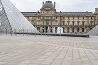 A gloomy day in Paris, Europe. The classic architecture of the buildings and the town square create a timeless urban design. The grey sky adds to the atmosphere of the city, known for its iconic monuments and tourist attractions.