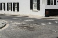This is an image of a classic architecture residential area in Gibraltar, United Kingdom. The monochrome photo shows a line of suburban houses with white facades and black curbs along the road. The well-maintained road surface made of asphalt adds to the urban atmosphere of the neighborhood. This photo represents a typical day in a residential area in Gibraltar.