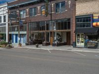 Classic architecture lines the road in a rural town in Utah, USA. Clouds dot the clear sky, creating a picturesque day for shopping. Explore the charming storefronts and urban charm of this town.