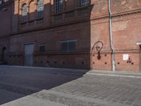This stock photo showcases the classic architecture of Berlin, Germany. The city is known for its cobblestone streets, brick buildings, and beautiful tree-lined roads. The image captures a neighborhood with a mix of residential and commercial properties, and a charming courtyard with a red brick warehouse. The urban design of the city is evident in the hard shadows cast by the buildings. The photo represents the iconic European charm of Berlin with its Hinterhof architecture and a material property that showcases the timeless beauty of this urban setting.